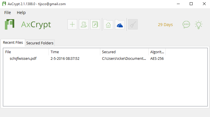 De gratis versie van AxCrypt wordt wel steeds beperkter helaas, door de Freemium-opzet. Je krijgt de eerste dertig dagen gratis de beschikking over alle functionaliteit en moet dan genoegen nemen met minder functionaliteit of gaan betalen.