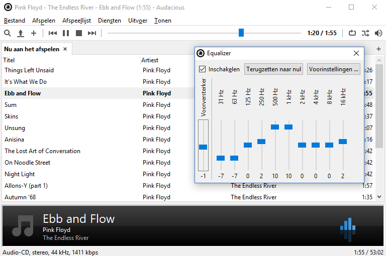 Audacious is prettige muziekspeler met veel mogelijkheden.
