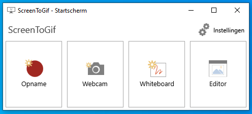 ScreenToGif is een open source applicatie om schermopnamen te maken van je Windows pc. Je kunt activiteiten op je beeldscherm opnemen of beelden van je webcam vastleggen. Vervolgens kun je deze opslaan als gif- of video-bestand. Ook heeft ScreenToGif een Whiteboard en Editor.