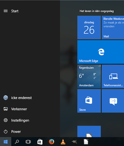 Als ik op een van deze klik krijg ik het startmenu over het hele scherm,en dat is lastiger zoeken.