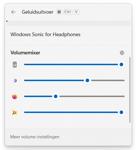 - Geluid: met de volumemixer die opent als je op het luidspreker-icoontje en dan geavanceerde instellingen klikt in het systeemvak biedt nu de mogelijkheid om per app het volume in te stellen