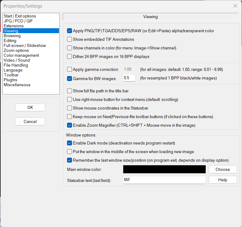 Precies een jaar na de vorige uitgave is vandaag IrfanView 4.65 uitgebracht door maker Irfan Skiljan. Nieuw in deze versie is een donkere modus. Ga naar Options/Settings | Properties - Viewing en zet een vinkje bij Enable Dark Mode en klik dan OK.