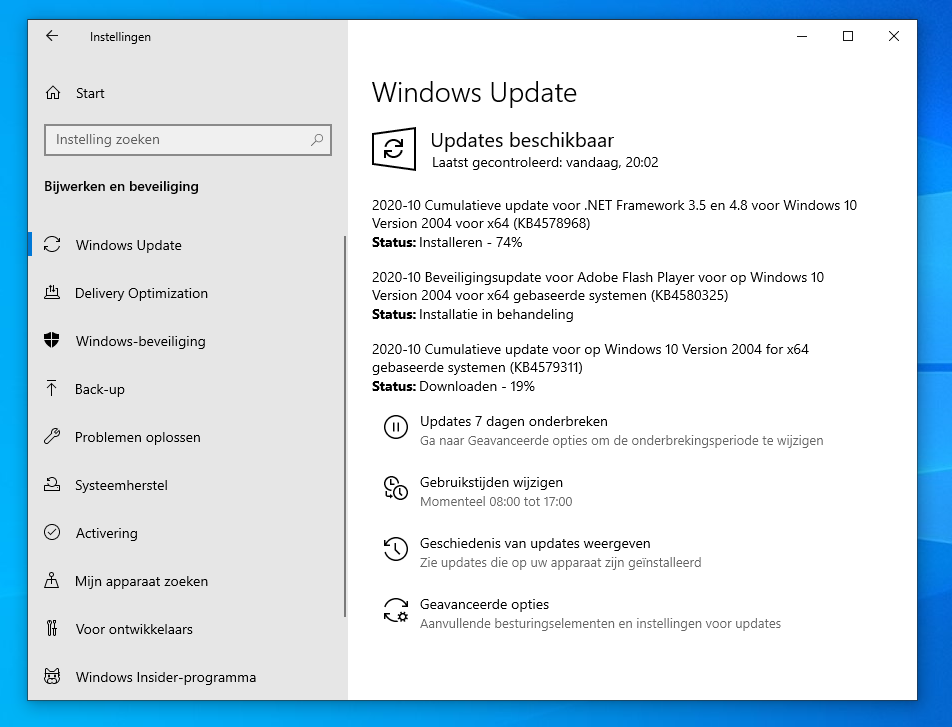Bij mijn pc duurde het updateproces meer dan 2 uur. Zowel het installeren van de maandelijkse update, het opnieuw opstarten met bijbehorende installatie nam veel tijd in beslag. Andere maanden is het met tien minuten wel bekeken.