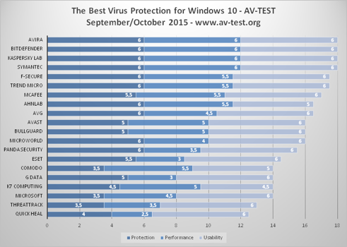 Het Duitse test-instituut AV-Test onderzoekt regelmatig de beschermingsgraad, systeembelasting en het aantal vals positieven van virusscanners. In september en oktober werden voor het eerst virusscanners op Windows 10 onderzocht. Bij de tests werd de bescherming tegen 142 zero-day aanvallen (nieuwe bedreigingen) en ruim 20.000 reeds wijdverspreide virussen gemeten.