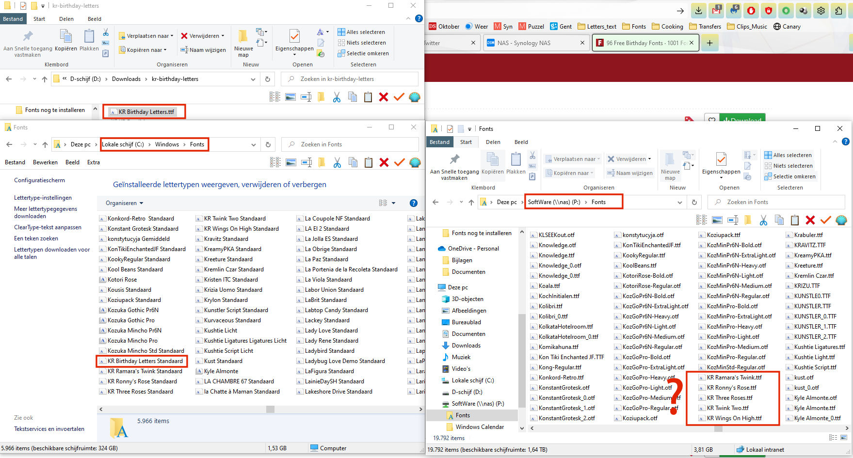 Ik stel vast dat de map Fonts (Windows 10) niet synchroniseert met mijn NAS.