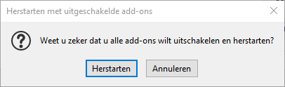 - Ga naar drie-streepjes-menu | Help | Herstarten met uitgeschakelde add-ons