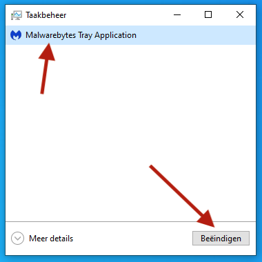 2. Selecteer de applicatie die je wilt stoppen in Taakbeheer en klik Beëindigen