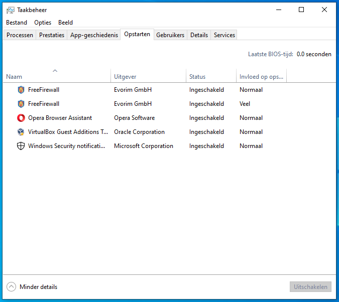 4. Ook kun je hier onder het tabblad Opstarten bekijken welke programma's opstarten als je je pc aandoet. Je kunt hier ook opstartende programma's uitschakelen, maar doe dit alleen als je zeker weet wat je doet.