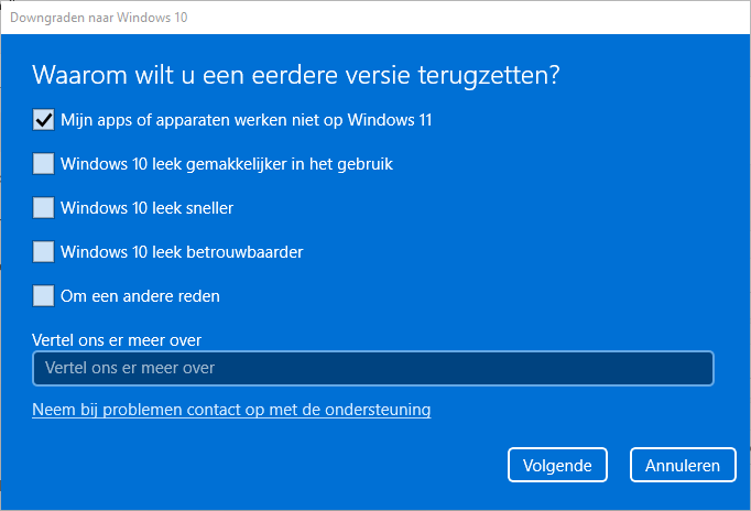 Als je bent geüpgraded van Windows 10 naar Windows 11 en je bent toch niet tevreden, dan kun je de eerste tien dagen downgraden naar Windows 10. Je zet Windows 11 dan weer terug naar Windows 10.