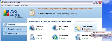 2. Klik met uw rechtermuisknop op E-Mail Scanner en kies voor Ignore component state
