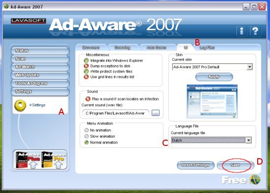 Ad-Aware 2007 en 2008 in het Nederlands instellen