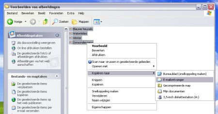 met windows xp probeer ik fotos te verzenden en ga ik naar email ontvanger