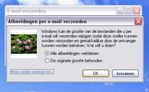 Ik wil een verkleinde foto met de mail versturen, maar NIET als bijlage. Dat wanneer mensen op de foto klikken zij de originele grootte te zien krijgen.