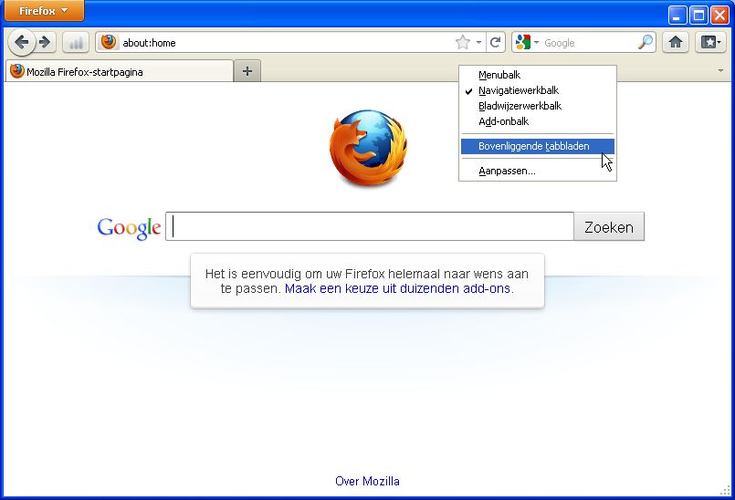 Dus Firefox bepaald dat je ze boven moet hebben??? (leuk!)