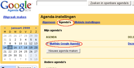 Open je Google agenda en ga naar Instellingen > Agenda's