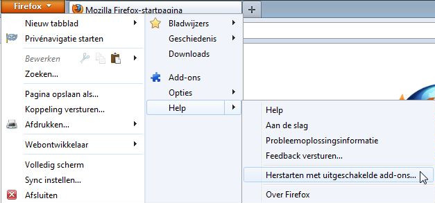 Help | Herstarten met uitgeschakelde add-ons