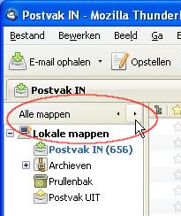 Oplossing: De mappenweergave is in Thunderbird 3.0 standaard veranderd in Slimme mappen, hierdoor zijn alle inboxen van verschillende mailaccounts verzameld - en lijkt het soms of u allerlei mappen en accounts mist. Dat is niet zo. U kunt simpel de oude structuur weer terugkrijgen door te kiezen voor Alle mappen.