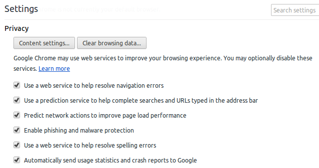 Wil je niet dat je internetgedrag gedeeld wordt met Google surf dan niet met Google Chrome - of zet diverse onderdelen uit. Google Chrome is een snelle, fijne browser, maar veel van je surfgegevens worden naar Google gestuurd. Kijk maar eens naar deze Chrome-instellingen, die allemaal vereisen dat de door jou bezochte website-adressen naar Google verzonden worden: