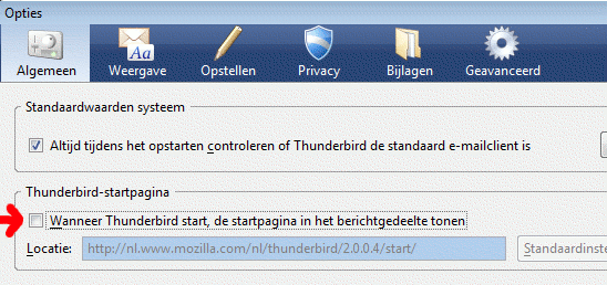 Thunderbird - Niet de Thunderbird-startpagina in het berichtenvenster tonen