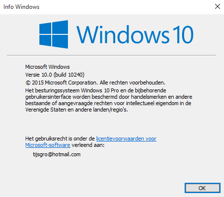 De Edge-browser is in build 10240 flink onderhanden genomen en zou nu een stuk sneller moeten zijn en beter presteren op allerlei benchmarks. Als je deze laatste build installeert krijg je na het herstarten een Nederlandstalige instructie over het nieuwe Windows 10. Eenmaal aangekomen bij het bureaublad zul je zien dat het buildnummer niet meer rechtsonder staat. Dit is de RTM-versie ten slotte. Je kunt je versienummer wel vinden door te zoeken (vergrootglas naast de startknop), winver in te vullen en op enter te drukken.