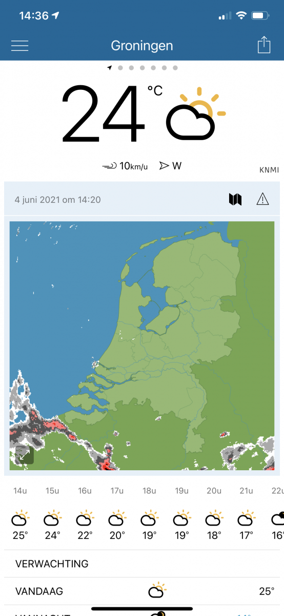 Je kunt de standaard weer-app van Apple op je iPhone of iPad gebruiken of de weer-app van Google. Maar die zijn soms wat minder nauwkeurig in hun voorspellingen - hebben wij de indruk - en minder uitgebreid.