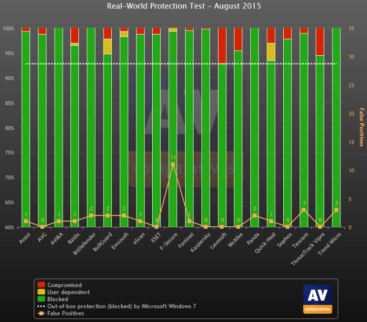 Avira, Panda, Bitdefender en Trend Micro foutloos (real-word protection augustus 2015)