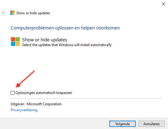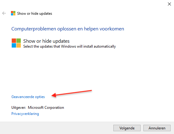 De derde optie is om de Microsoft tool Windows Update Show Hide te gebruiken.
