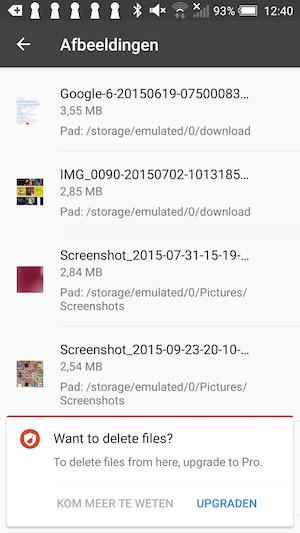 Jammer is alleen dat je vanuit CCleaner voor Android alleen grote bestanden kunt weggooien als je de Pro-versie koopt. In de gratis versie van CCleaner zul je de bestanden handmatig moeten opzoeken en weggooien met een bestandsbeheerder in Android. Apps kun je wel direct verwijderen door op het vuilnisbak-icoontje te klikken.