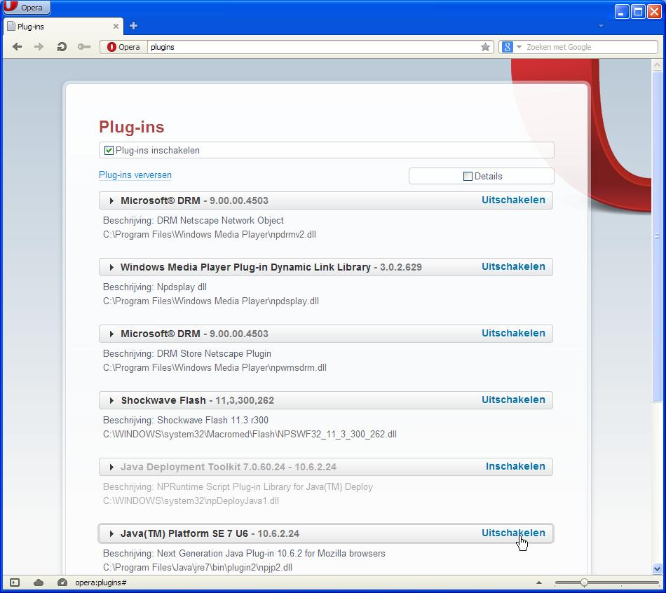 Java uitzetten in Opera (Windows, Mac OS X, Linux)