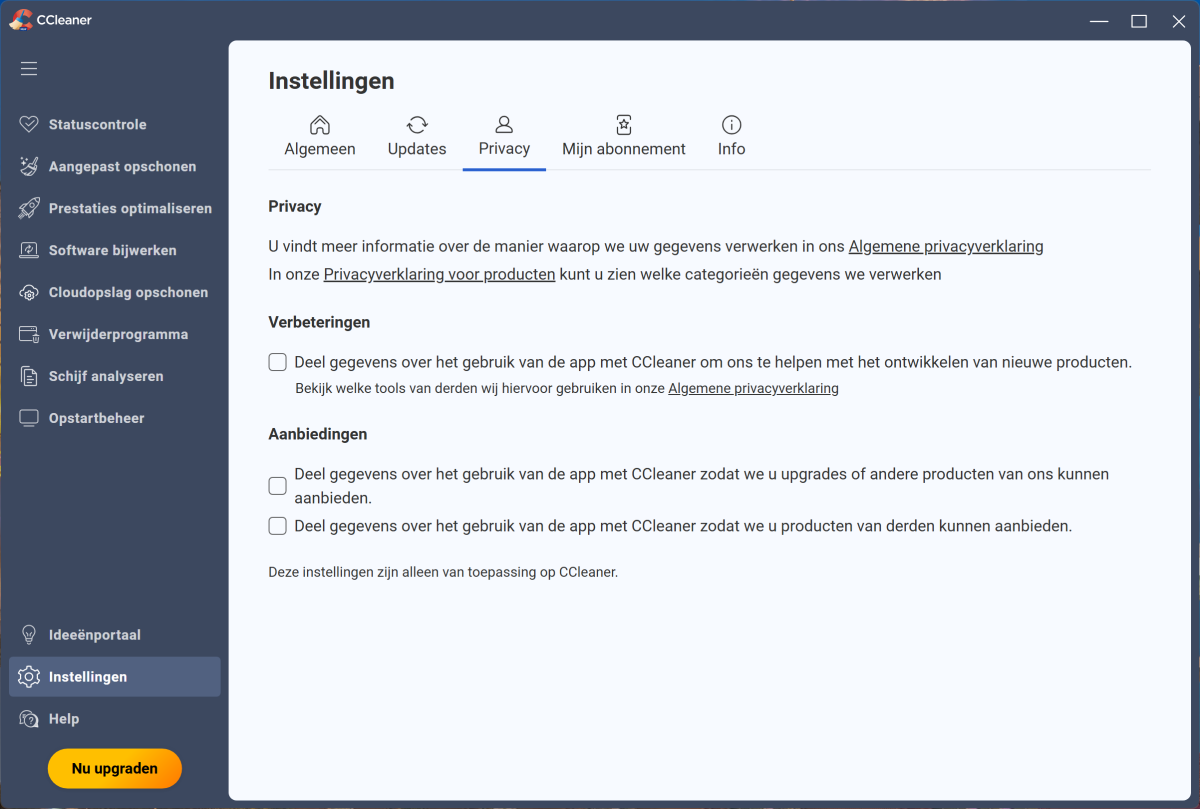 Jammer genoeg zijn in CCleaner 7, net als daarvoor, wel veel betaalde functies terug te vinden die je in de gratis versie niet kunt gebruiken. Prestaties optimaliseren, software bijwerken en het nieuwe Cloudopslag opschonen zijn voorbehouden aan de Professional versie, die normaal gesproken 45 euro per jaar kost, maar nu 14 euro.