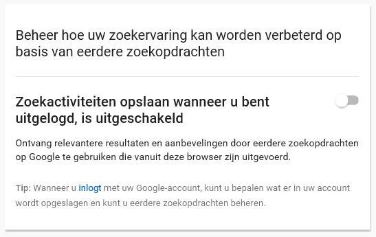 Daarna kun je inloggen bij je Google-account en nog een keer alle schakelaars uitzetten en de verzamelwoede van Google intomen door op dezelfde webpagina's de instellingen voor je ingelogde status te wijzigen.
