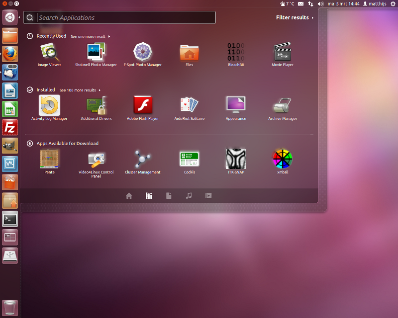 Nieuwe Dash in Unity-interface van Ubuntu (klik voor groter)