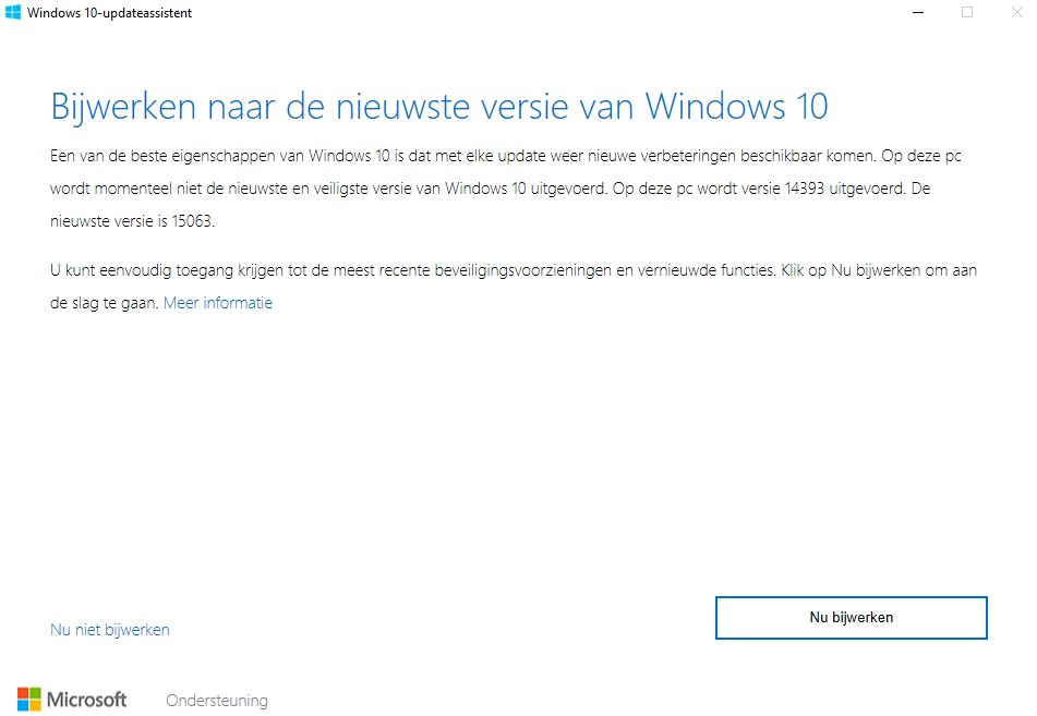 Maar mocht het toch kriebelen en wil je het gokje wel nemen en eventuele problemen op de koop toe nemen, dan kun je dus zelf de Creators Update downloaden en installeren op je pc. Want het gaat natuurlijk ook vaak wel goed, of de problemen zijn klein en te verwaarlozen. De keus is aan jou!