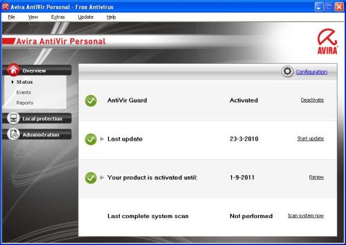 Verder is het installatieproces vereenvoudigd en versneld. Installatie van Avira AntiVir is mogelijk in drie klikken (als u zich niet registreert). Volgens Avira is het trouwens niet nodig om versie 9 eerst te de-installeren en kunt u nummer 10 er gewoon overheen zetten.