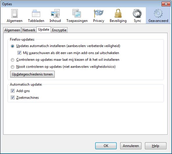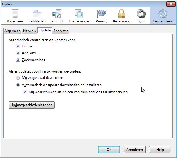 Sowieso is het de bedoeling dat Firefox vanaf vermoedelijk versie 13 automatisch en stilletjes (zonder tussenkomst van de gebruiker) zal worden geüpdate - net als Google Chrome. Opvallend is dat de update-opties van Firefox 9 en Firefox 10 iets aangepast zijn. Waarschijnlijk als onderdeel van deze op handen zijnde wijziging in het update-proces.
