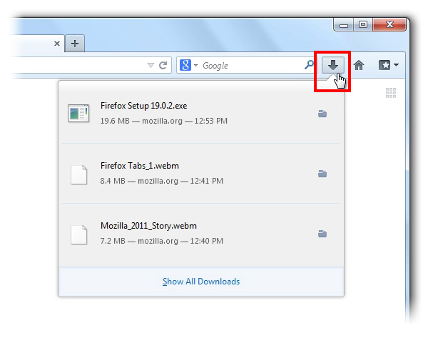 Nieuwe downloadmanager Firefox met knop in de werkbalk