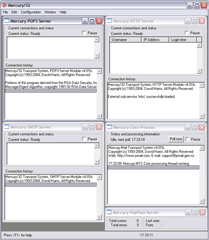 Met één Mercury server - waarvoor een oude pc kan worden gebruikt  - kunnen duizenden mailboxen worden bediend. Mercury werkt maanden achtereen zonder enig onderhoud.