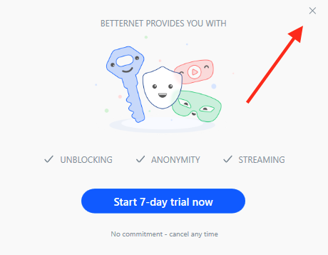 2. Betternet kan eigen reclame tonen als u internet via zijn VPN
