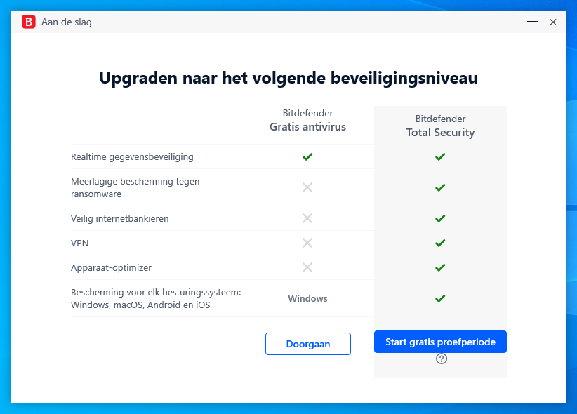 Veel andere functies zijn alleen in de betaalde versie aanwezig, maar Bitdefender Antivirus Free maakt een goede indruk met prima basisbescherming, een Nederlandstalige interface en een prettiger en overzichtelijker uiterlijk. Dit gevoegd bij de uitstekende bescherming (meestal in de top drie in tests) maakt dit Bitdefender een aanrader!