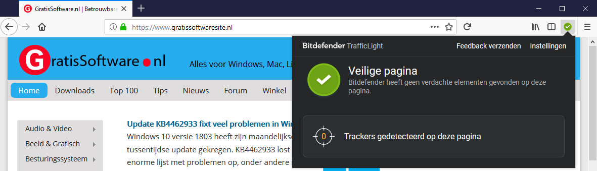 Bitdefender TrafficLight beschermt tegen malware, phishing, blokkeert bepaalde trackers en beveiligt de zoekresultaten van Google, Bing en Yahoo! met een groen vinkje voor elke gevonden pagina.