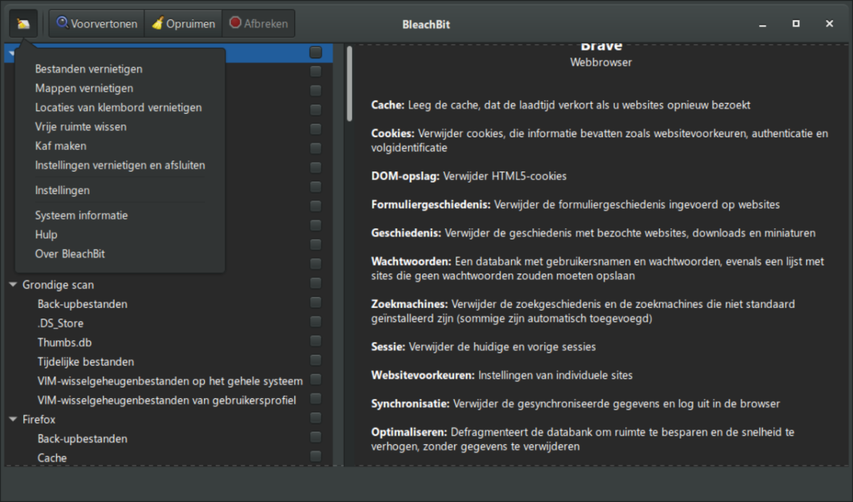BleachBit is zowel voor Linux als Windows beschikbaar. Voor Linux is BleachBit wat CCleaner voor Windows is. Maar ook voor gevorderde Windows-gebruikers is BleachBit een interessant programmaatje. BleachBit wordt zonder extra gebundelde software geleverd (wat bij de meeste gratis Windows-software tegenwoordig standaard is) en heeft een ingebouwde shredder waarmee je sporen kunt wissen, maar ook bestanden kunt vernietigen via het contextmenu in Windows Verkenner.