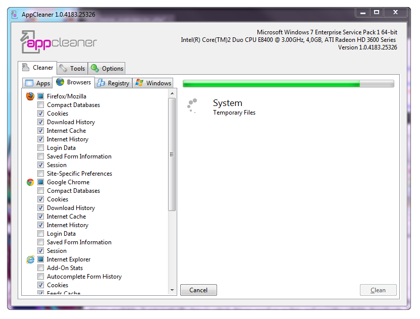 AppCleaner is een nieuw schoonmaakprogramma voor Windows van het Duitse bedrijf UpdateStar. Het lijkt behoorlijk op alternatieven als CCleaner en SlimCleaner en kan browsersporen van Internet Explorer, Google Chrome, Firefox en Opera opruimen. Verder worden tijdelijke Windows-bestanden en sporen van andere programma's gewist.