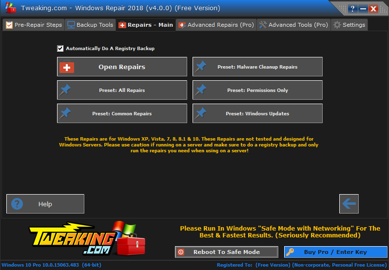 Voordat je Tweaking.com Windows Repair alle problemen kunt laten fixen moet je eerst een aantal stappen doorlopen. Een belangrijke stap die je niet moet vergeten is de volgende: