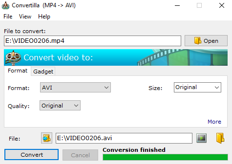 Convertilla is van oorsprong Russisch, tijdens de installatie kom je nog wat onvertaalde zinnetjes tegen, maar het programma is wel geheel vertaald in het Engels. De interface van Convertilla is heel eenvoudig, je kiest het filmpje dat je wilt converteren en vervolgens kun je zelf een formaat selecteren onder 'Format' of het apparaat waarop je het wilt afspelen onder 'Gadget'. Daarna klik je Convert.