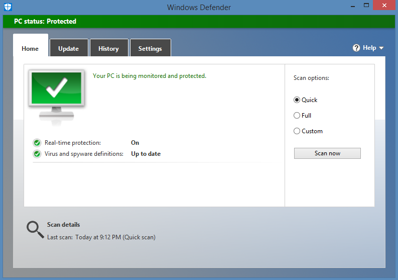Windows Defender in Windows 10, in Windows 8.1 ziet het er zo uit