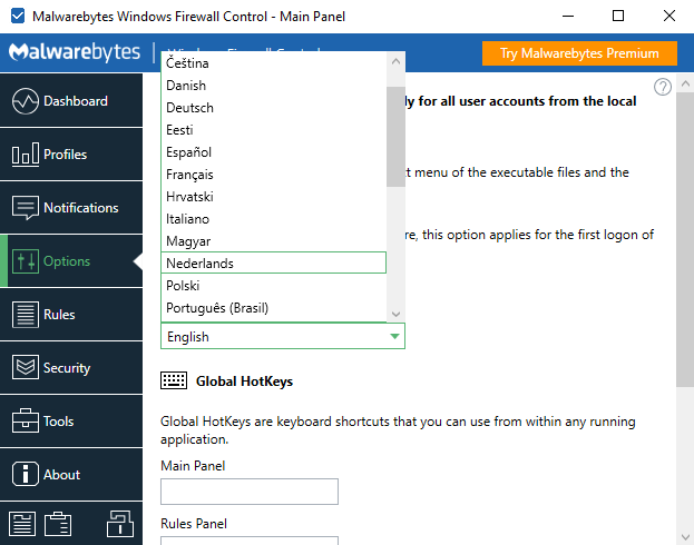 Windows Firewall Control is ook vertaald in het Nederlands: ga naar Options | Languages en kies Nederlands.