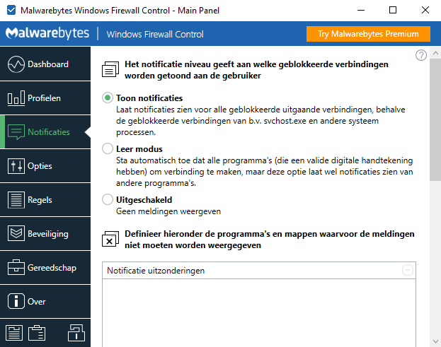 Als je iets minder streng wilt zijn dan kun je onder Notificaties ook voor Leer modus (Learning Mode) kiezen waarna alleen bij niet digitaal gesigneerde programma's gevraagd wordt of je toestemming wilt geven. Dit is voor de meeste minder gevorderde gebruikers aan te raden!