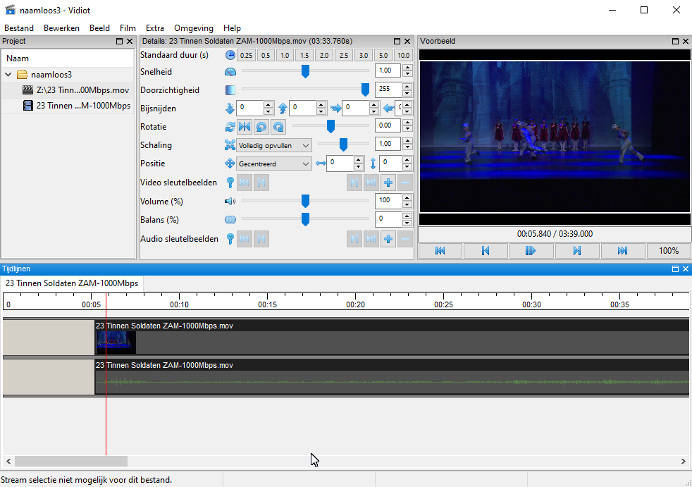 Vidiot is een videobewerker voor Windows en Linux. Je maakt eerst een nieuw project aan (Bestand | Nieuw) waarna je mediabestanden kunt importeren. Vervolgens kun je allerlei bewerkingen uitvoeren.