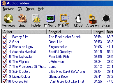 Verder kan Audiograbber muziek normaliseren en stiltes aan het begin of eind van een nummer weghalen. Om titelgegevens op te halen van internet klik je op de CDDB-knop. Simpel maar doeltreffend.