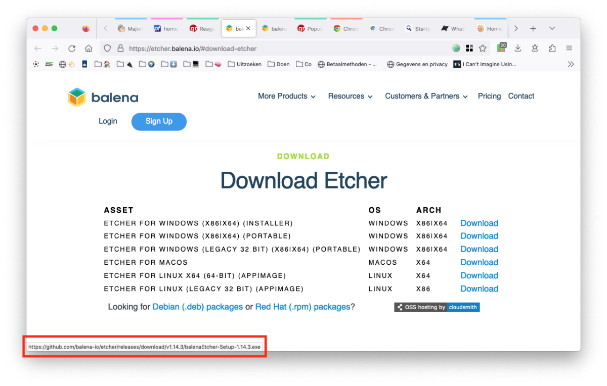 Bij ons wordt via de balena website nog altijd Etcher 1.14.3 aangeboden bij de downloads voor Windows, Mac en Linux.